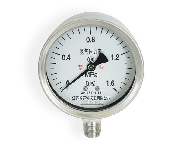 氮气压力表适用于测量密闭容器或者管道内氮气介质的压力的场合,氮气压力表由导压系统、齿轮传动机构、示数装置、和外壳所组成。外壳为气密性结构,能有效的保护内部机件免受环境影响。